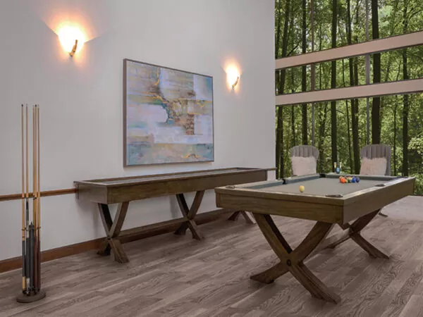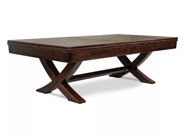 The Reagan Dining Billiard Table by Presidential Billiards is an elegant, solid wood pool table in an Ash brown finish. The sweeping arc of the legs gives this table an elegance that will look stunning in any home.